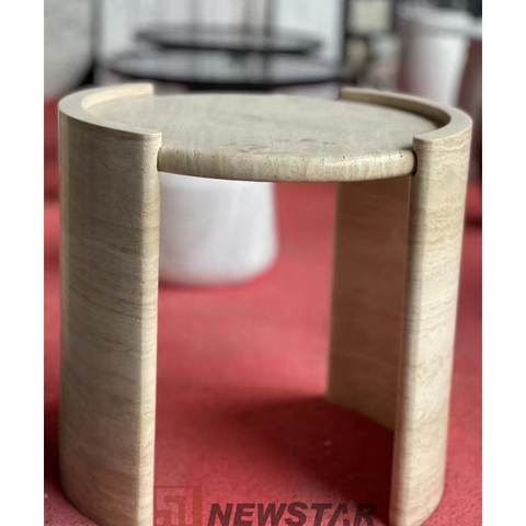 Mesa auxiliar de mármol travertino, muebles de consola Beige para sala de estar, dormitorio, mesita de noche de mármol, mesa auxiliar