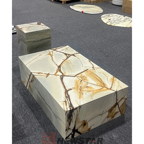 Newstar Muebles personalizados Calacatta mesa de centro mármol superior diseño minimalista para entrada de sala de estar patrones cuadrados rectangulares