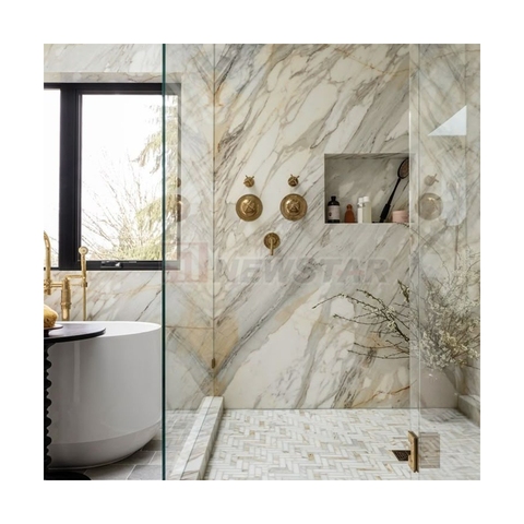 Newstar Calacattaホワイトゴールド天然大理石スラブカット壁タイルホーム浴室装飾天然大理石壁パネル