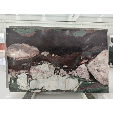 ファンタジーグリーン大理石スラブモダン背景壁パネル & バスルームバニティトップ4シーズンポリッシュビッグマーブルヴィラ用