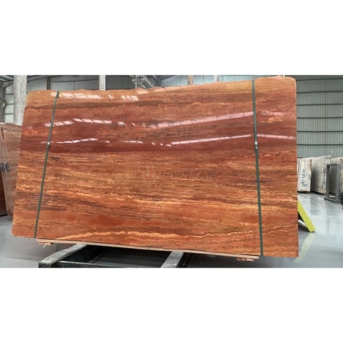 Newstarモダンデザイン天然赤トラバーチンスラブ洗練された表面カットサイズの石タイル屋内用ホテルヴィラのベッドルーム