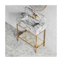 アラベスタト大理石シンク自立型洗面台浴室モダン大理石台座シンク金属棚付き