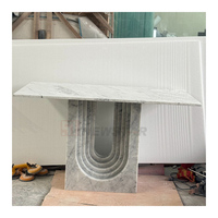 أثاث من الرخام من Newstar مكون من طاولة ذات وحدة تحكم مخصصة بيضاء من Cararra وحدة تحكم من الفيولا والكالاكاتا ومنضدة لوحية من الرخام الطبيعي للمدخل