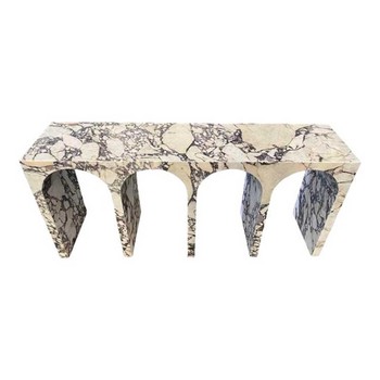 Otel lüks Calacatta menekşe traverten uzun boylu kaide standı ekran düşük merkezi beyaz Arabescato Viola mermer kaide sehpa